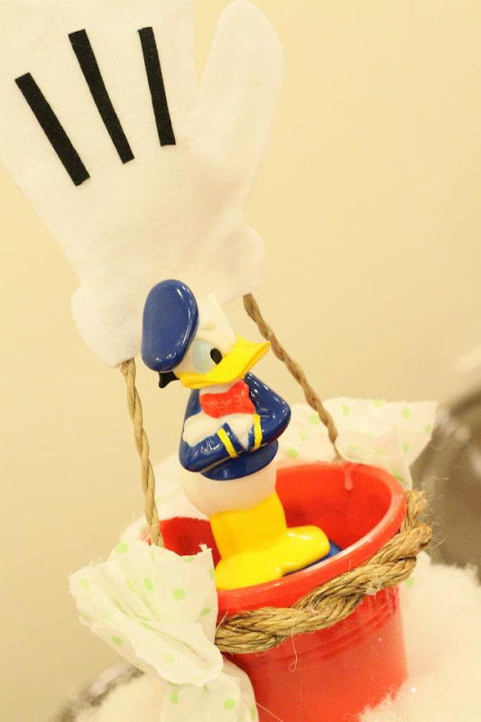 All of the decor was handmade. I made the kite out of wood paint stirrers, an old blanket + rope. The hot air balloon I freehanded + assembled from common objects like rope, left over fabric + beach bucket. The large wall trees are a blend of paper lunch bags, and tissue paper. All of the signage was reused wood from past home construction projects and free-hand painted.”