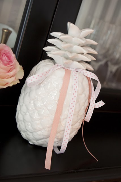 Today's winning party feature goes to this beautiful SUMMER PINEAPPLE SIP AND SEE BABY SHOWER submitted by Little Hoot. Isn't this the sweetest?! I adore the wording on the invite..."Her name is June, she was born in July, and we'd love for you to meet her in August." What a perfect baby shower. It would also be a lovely birthday party or bridal shower.