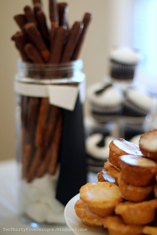 The Little Flower Bakery made the app cookies and the ties for the cupcakes. The cupcakes were actually bought at the local grocery store, I had them just do a 'drop' of icing on each cupcake. Everything else was made by myself, including paper goods, shirts & nametags.